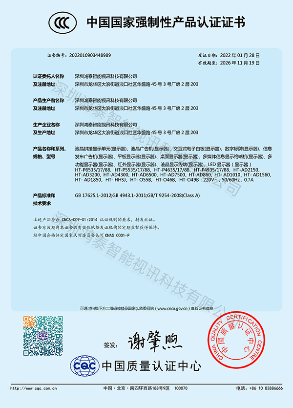 高清:采用高清16:9全视角LCD显示屏,分辨率1920*1080,可升级为3840*2160;超薄:工业级外观,整机机身53mm厚,丝印边仅18mm