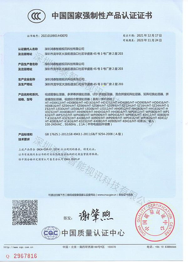 企业通过了ISO9001质量管理体系认证,全部产品通过中国质量检测中心认证,通过了CCC、CE、FCC、ROHS认证、获得中国智慧城市推荐品牌、国际安博会创新产品奖和3111平安城市优秀推荐产品等多项荣誉。