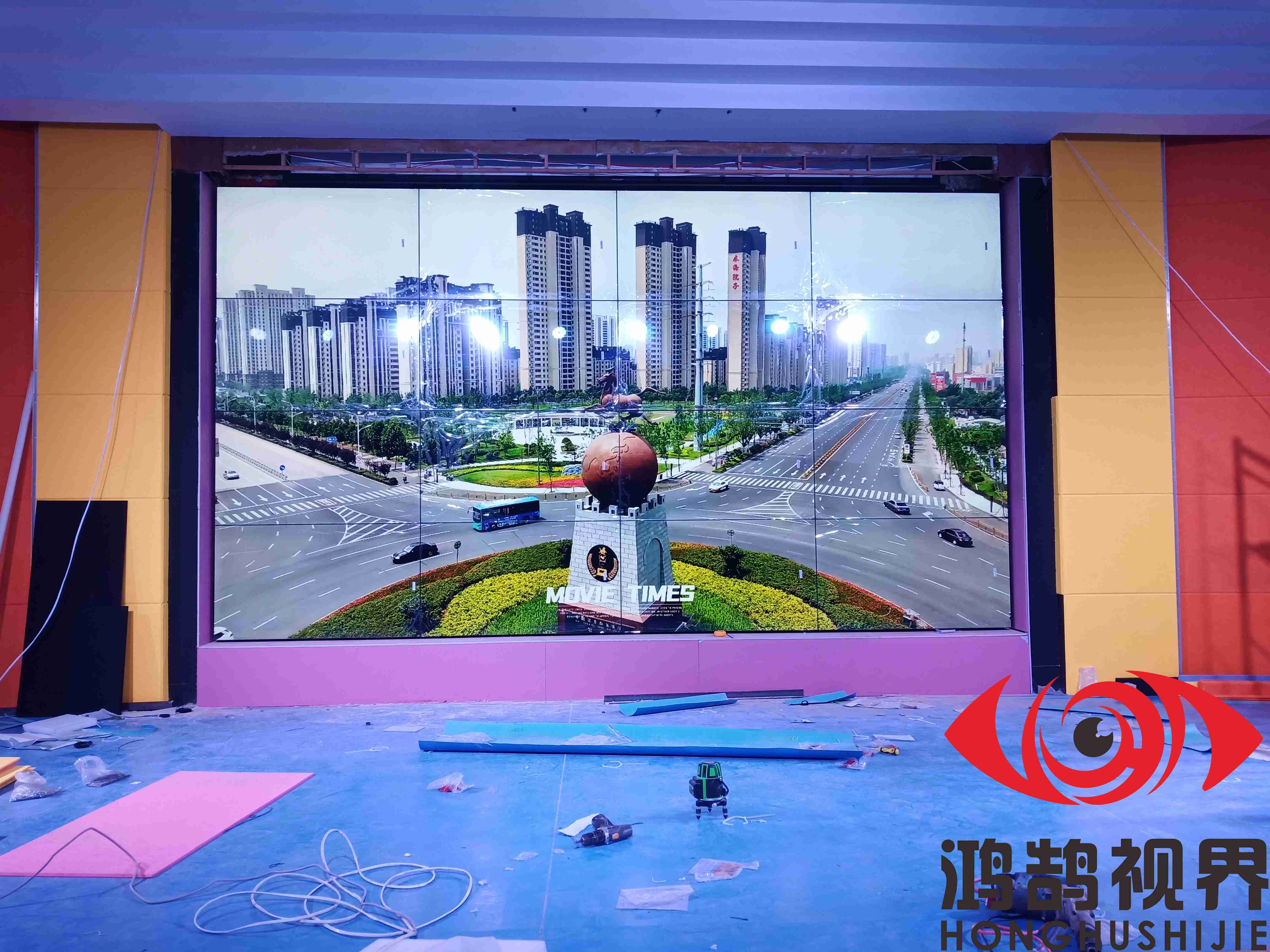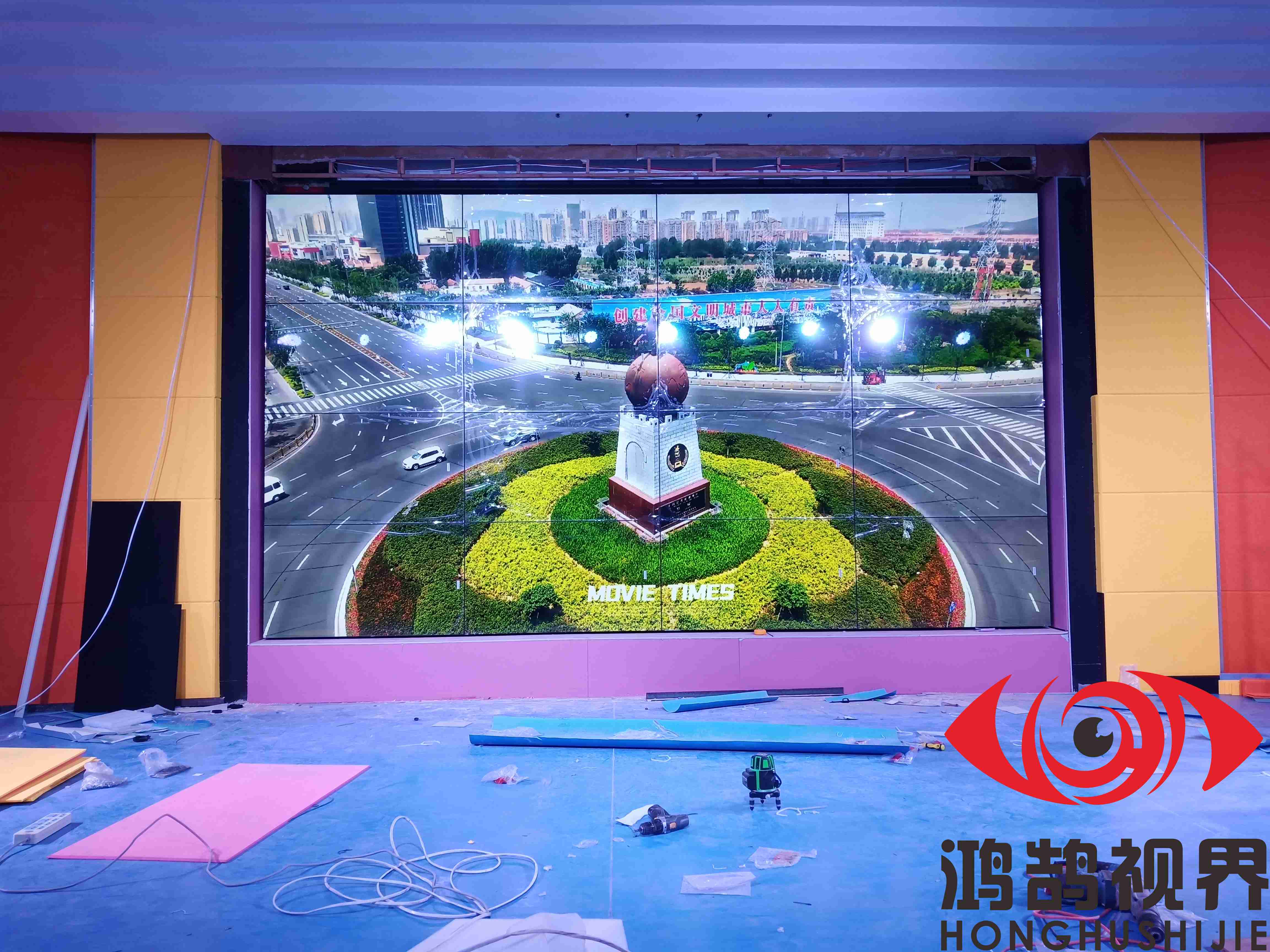 采用55英寸3.5mm 四行四列 液压前维护安装
